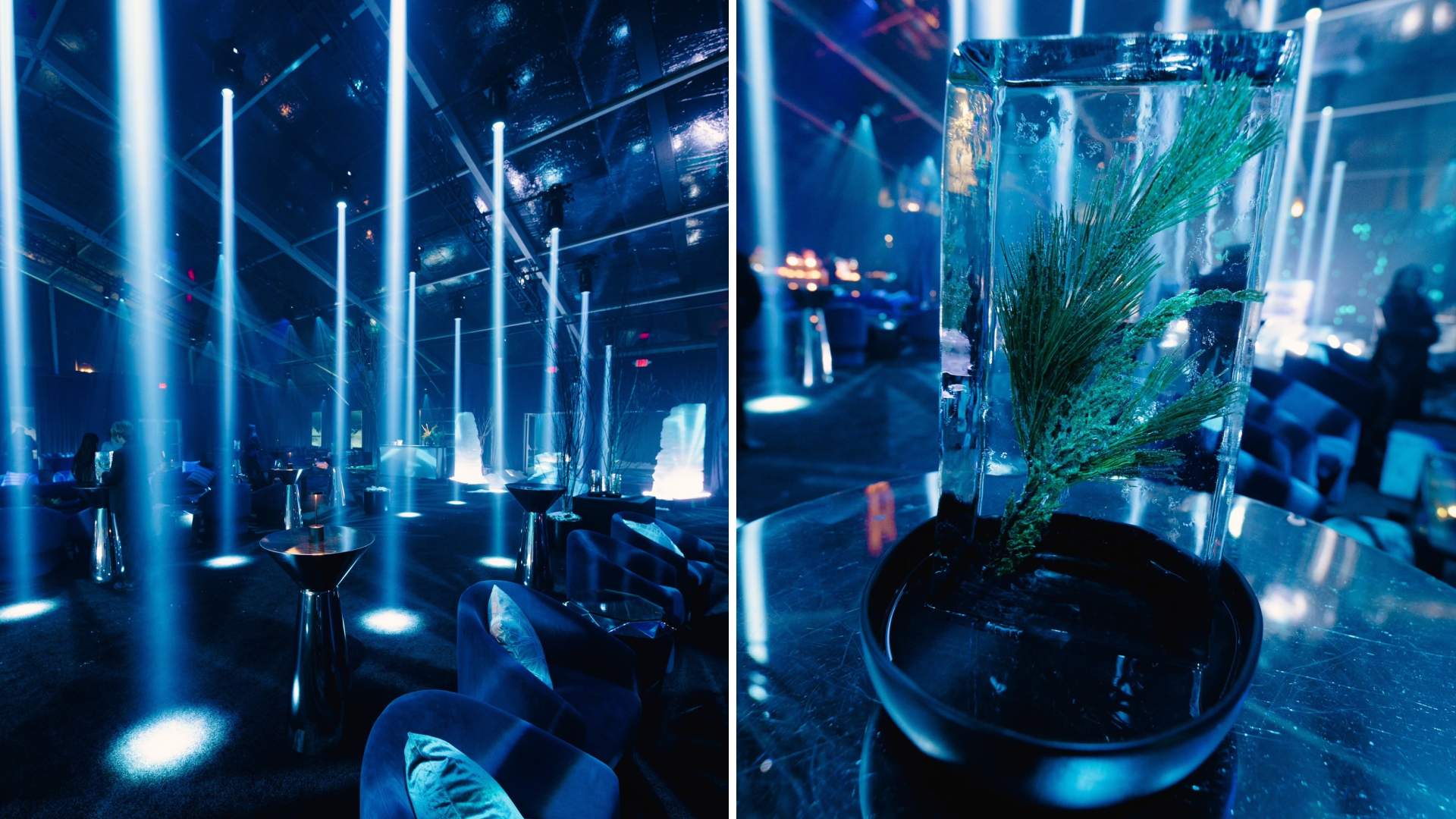 Partnering with HBO for the Series 4 Premiere of True Detective: Night Country, we transformed the Paramount Theater into an icey Alaskan experience for red carpet attendees. After stopping at the press in front of a 30ft ice wall, attendees stepping into a frosty afterparty of low fog, lights beams, and frozen florals and monolithic ice bars in front of our 60ft LED wall casting curated alaskan footage.