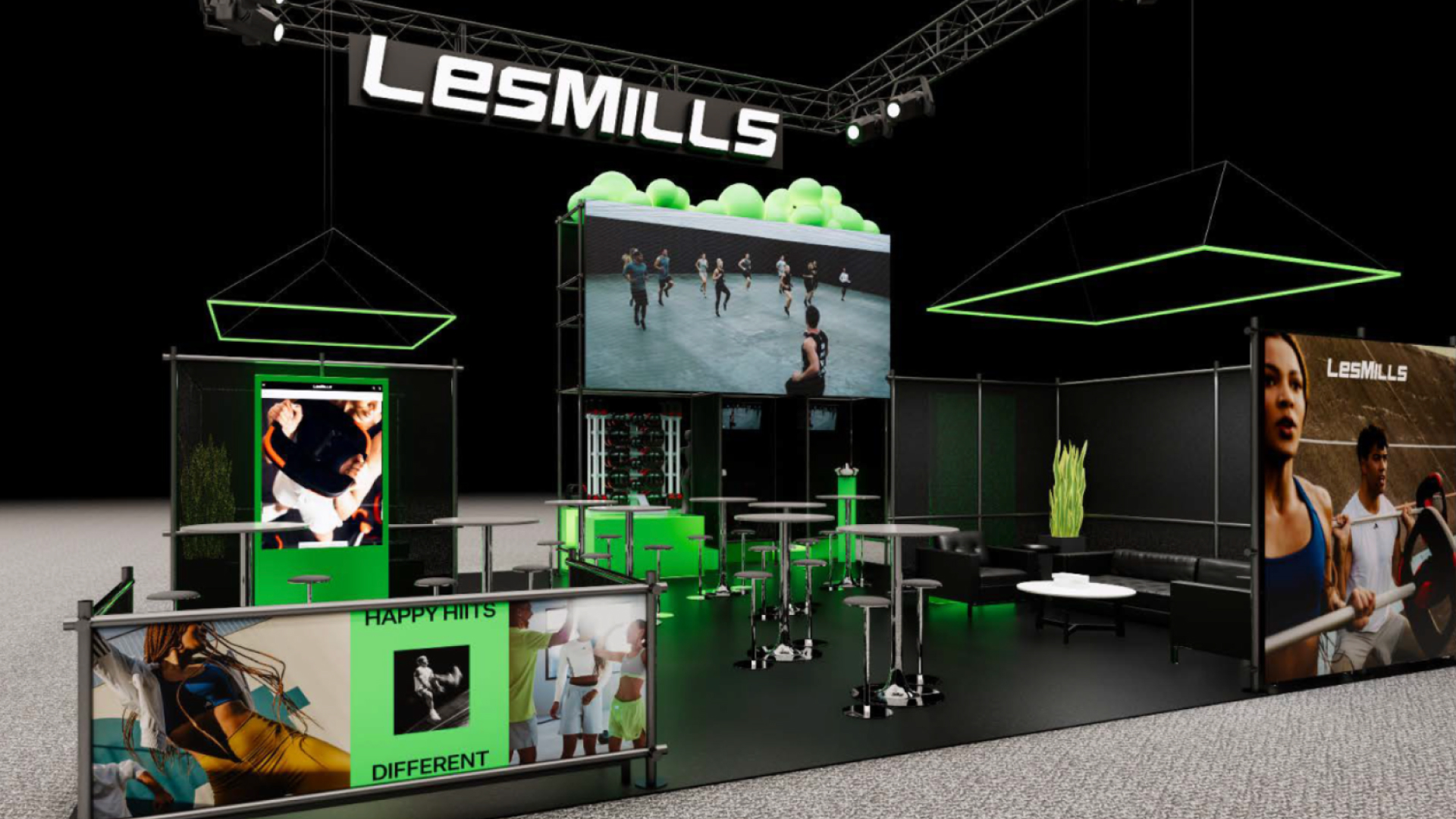 For LES MILLS LIVE’s tent pole event in Los Angeles, we created a 60,000 sq ft athlete’s village equipPed with an always on live DJ, Local Artist moment, Product Customization, Immersive Retail Experience, and Workout Innovation Lab to get attendees pumped before entering the live filming workout arena.