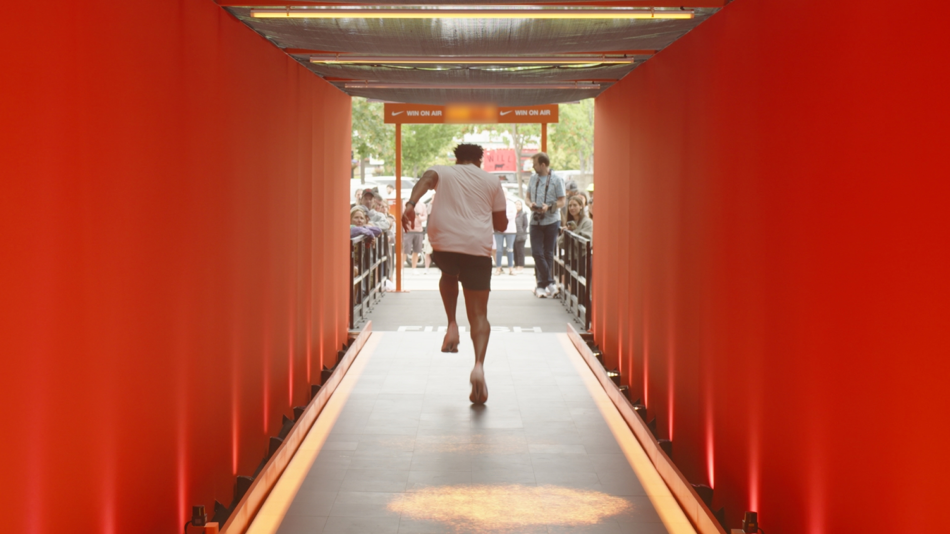 In collaboration Nike Brand Design, FREEHOLD designed and created an interactive try on experience where consumers competed to outpace Olympic athletes in an immersive tunnel runway.